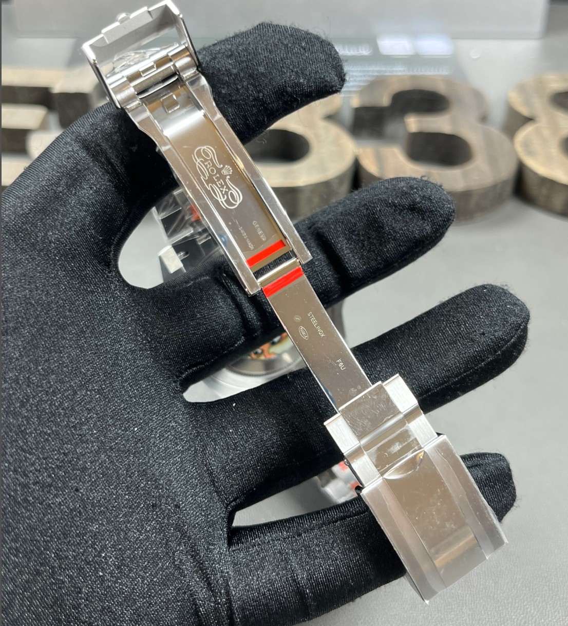 Tamaño: 40 mm x 12,5 mm Movimiento : Movimiento asiático Dan Dong Super Clone 3285 Automatic GMT con puentes decorados y rotor con pila manual correcta, reserva de marcha de 70+ horas Funciones : Horas, minutos, segundos, fecha y visualización GMT Caja : Caja sólida de acero inoxidable 904L Cristal : Cristal de zafiro resistente a los arañazos con recubrimiento AR Esfera : Esfera negra superlumada y manecillas en el color azul correcto Bisel : Bisel cerámico giratorio bidireccional negro/gris Correa : Brazalete macizo de acero inoxidable 904L Cierre : Cierre desplegable Resistencia : >50 metros Tenga en cuenta que esta clasificación es meramente orientativa. No aconsejamos sumergir o sumergir ninguna réplica de reloj en el agua a menos que un profesional haya hecho que su reloj sea impermeabilizado Tenga en cuenta que esta calificación es meramente orientativa. No aconsejamos sumergir o sumergir ninguna réplica de reloj en agua a menos que un profesional haya hecho que su reloj sea impermeabilizado. No garantizamos la resistencia al agua del producto y, como tal, no reembolsamos, ofrecemos crédito en la tienda, cambiamos ni hacemos una reparación gratuita en ningún reloj que tenga daños por agua.