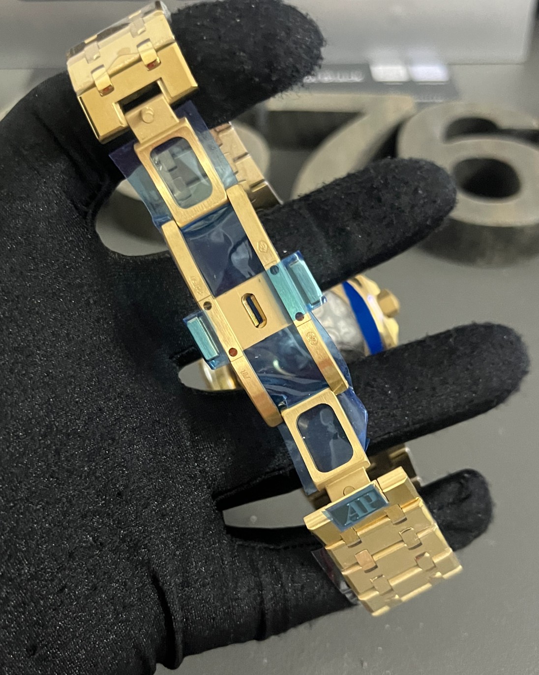 Tamaño: 41 mm x 12,4 mm (igual que el reloj genuino) Movimiento : Movimiento súper clon asiático AP cal. 4401, el mejor movimiento AP asiático en este momento, función flyback real, 1:1 hecho de movimiento genuino Funciones : Horas, minutos, subsegundos, indicación de la fecha y cronógrafo, función flyback real como original Caja : Caja de acero inoxidable macizo de alta calidad chapada en oro amarillo 1:1 esmerilado Cristal : Cristal de zafiro resistente a los arañazos con revestimiento antirreflectante incoloro Esfera : Esfera superlumada con textura de oro amarillo, la misma forma que la esfera genuina Bisel : Bisel de acero inoxidable chapado en oro rosa de 18 quilates esmerilado, misma construcción que el genuino Correa : Brazalete de acero inoxidable macizo de alta calidad chapado en oro amarillo 1:1 esmerilado Cierre : Cierre de doble despliegue de alta calidad con grabados profundos. Tenga en cuenta que esta calificación es meramente orientativa. No aconsejamos sumergir o sumergir ninguna réplica de reloj en agua a menos que un profesional haya hecho que su reloj sea impermeabilizado. No garantizamos la resistencia al agua del producto y, como tal, no reembolsamos, ofrecemos crédito en la tienda, cambiamos ni hacemos una reparación gratuita en ningún reloj que tenga daños por agua.