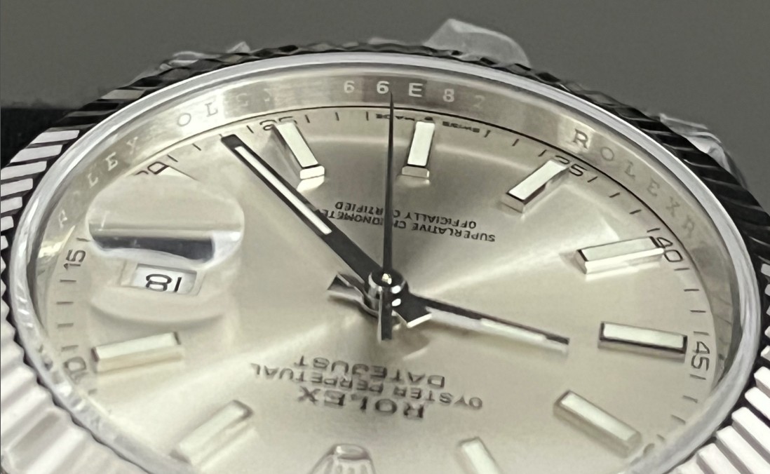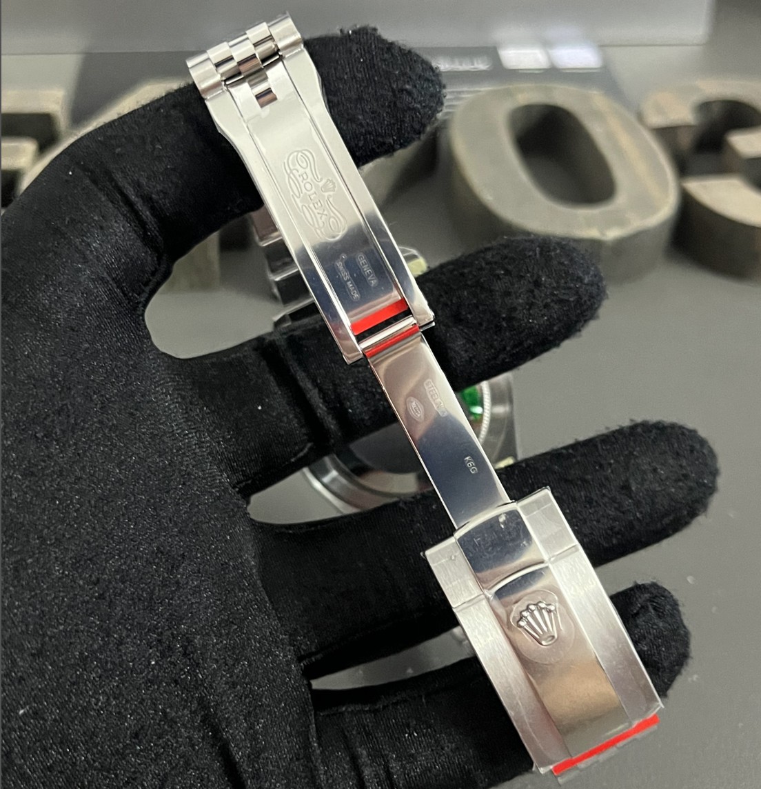 Tamaño: 41 mm x 13 mm Movimiento : VSF Super Clone 3235 Movimiento automático a 28800 vph, 72 horas de reserva de marcha completa Funciones : Indicación de horas, minutos, segundos y fecha Caja : Acero inoxidable 904L de alta calidad 1:1, fondo y corona atornillados, grabado profundo y de doble línea, grabados más brillantes y precisos, número de serie aleatorio grabado a las 6:00 del rehaut. Diferentes series aleatorias Cristal : Cristal de zafiro a prueba de arañazos con recubrimiento antirreflectante 2.5x cyclops (estándar suizo, doble cara, igual que el genuino) el cíclope es muy claro como genuino. Esfera : Esfera plateada superlumada Bisel : Bisel de acero inoxidable estriado, la misma forma que el genuino Correa : Brazalete Rolex Oyster de acero inoxidable 904L con SEL perfecto, cierre y tornillos lisos (El mejor brazalete Rolex de todos los tiempos) Cierre : Cierre desplegable de súper alta calidad, logotipo de la corona Rolex bien hecho Resistencia : >50 metros Tenga en cuenta que esta clasificación es meramente orientativa. No aconsejamos sumergir o sumergir ninguna réplica de reloj en el agua a menos que un profesional haya hecho que su reloj sea impermeabilizado Tenga en cuenta que esta calificación es meramente orientativa. No aconsejamos sumergir o sumergir ninguna réplica de reloj en agua a menos que un profesional haya hecho que su reloj sea impermeabilizado. No garantizamos la resistencia al agua del producto y, como tal, no reembolsamos, ofrecemos crédito en la tienda, cambiamos ni hacemos una reparación gratuita en ningún reloj que tenga daños por agua.