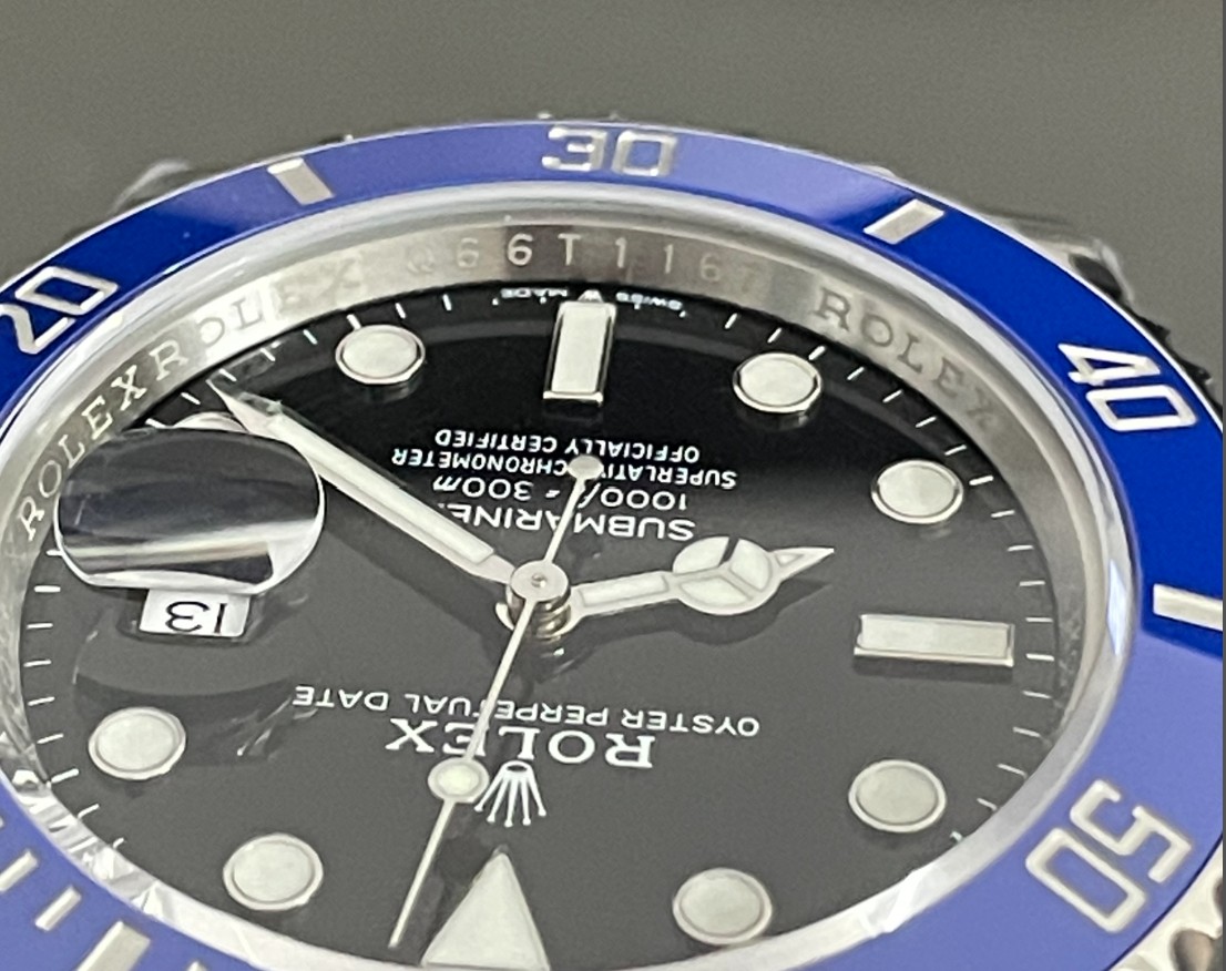 Tamaño: 41 mm x 12,25 mm (igual que el original) Movimiento : VSF Super Clone 3235 Movimiento automático a 28800 vph, 72 horas de reserva de marcha completa Funciones : Indicación de horas, minutos, segundos y fecha Caja : Acero inoxidable 904L de alta calidad 1:1 Cristal : Cristal de zafiro redondeado a prueba de arañazos con revestimiento antirreflectante 2.5x cyclops (estándar suizo, doble cara, igual que el genuino) Esfera : Esfera superlumbreada y manecillas en el color azul correcto Bisel : Bisel giratorio unidireccional de cerámica azul, muy cercano al color azul genuino Correa : Brazalete de acero inoxidable 904L con SEL perfecto, cierre y extensión de buzos y tornillos lisos Cierre : Cierre desplegable Resistencia : >50 metros Tenga en cuenta que esta clasificación es meramente orientativa. No aconsejamos sumergir o sumergir ninguna réplica de reloj en el agua a menos que un profesional haya hecho que su reloj sea impermeabilizado Tenga en cuenta que esta calificación es meramente orientativa. No aconsejamos sumergir o sumergir ninguna réplica de reloj en agua a menos que un profesional haya hecho que su reloj sea impermeabilizado. No garantizamos la resistencia al agua del producto y, como tal, no reembolsamos, ofrecemos crédito en la tienda, cambiamos ni hacemos una reparación gratuita en ningún reloj que tenga daños por agua.