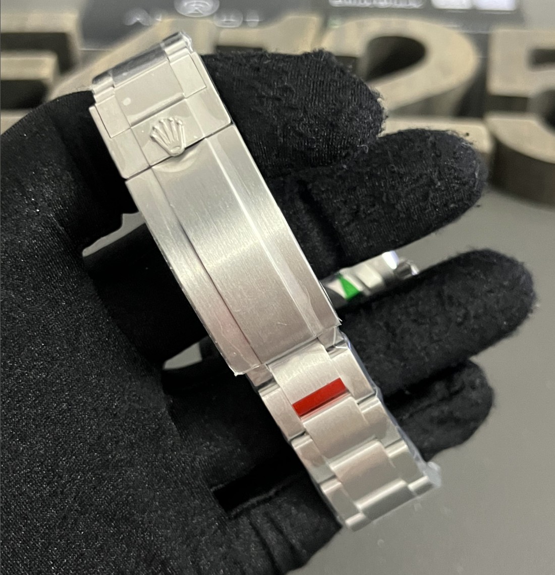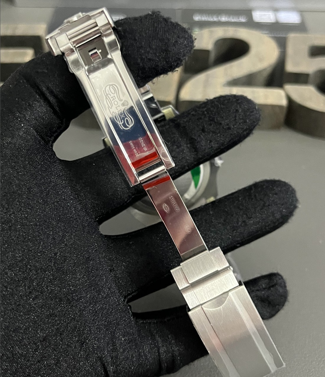 Tamaño: 40 mm x 13 mm Movimiento : Asia Clone Nuevo Movimiento Automático VS3135 Personalizado, 28800bph con Rotor Totalmente Decorado y Puentes y Placas como el Calibre 3135 Rolex Genuino Funciones : Indicación de horas, minutos, segundos y fecha Caja : Acero inoxidable 904L 1:1 de alta calidad, fondo y corona atornillados, grabado profundo y de doble línea Cristal : Cristal de zafiro redondeado a prueba de arañazos con revestimiento antirreflectante 2.5x cyclops (estándar suizo, doble cara, igual que el genuino) Esfera : Esfera superlumbreada y manecillas en el color azul correcto Bisel : Bisel giratorio unidireccional de cerámica verde con marcadores correctos chapados en platino Correa : Brazalete de acero inoxidable 904L con SEL perfecto Cierre : Cierre flip-lock de nuevo estilo con logotipo de corona Rollie pulido Resistencia : >50 metros Tenga en cuenta que esta clasificación es meramente orientativa. No aconsejamos sumergir o sumergir ninguna réplica de reloj en el agua a menos que un profesional haya hecho que su reloj sea impermeabilizado Tenga en cuenta que esta calificación es meramente orientativa. No aconsejamos sumergir o sumergir ninguna réplica de reloj en agua a menos que un profesional haya hecho que su reloj sea impermeabilizado. No garantizamos la resistencia al agua del producto y, como tal, no reembolsamos, ofrecemos crédito en la tienda, cambiamos ni hacemos una reparación gratuita en ningún reloj que tenga daños por agua.